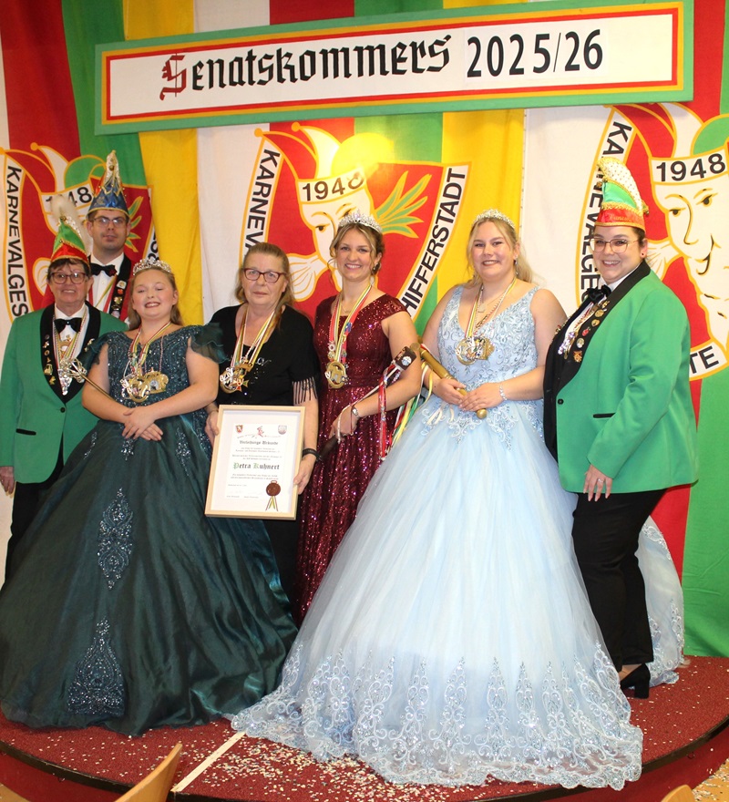 Er wird verliehen für besondere Leistungen außerhalb der Pflichten des karnevalistischen Titels sowie für besondere Verdienste im Sinne der Brauchtumsförderung. Wir danken unseren Aktiven für ihren Einsatz für den Verein.
